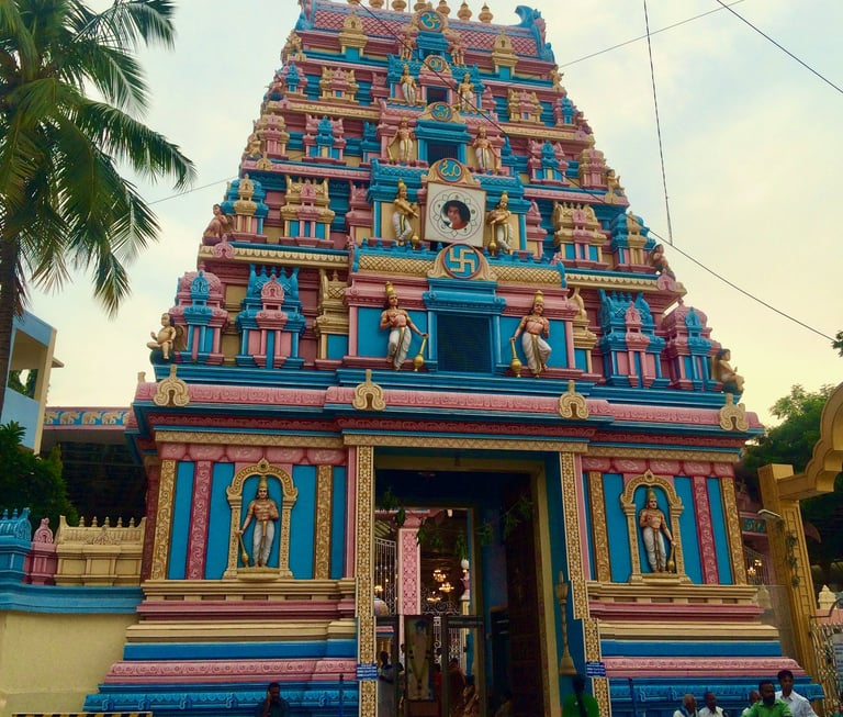 Gopuram Gate, entrada do ashram de Sri Sathya Sai Baba em Puttaparthi, Estado de Andhra Pradesh, Índia.