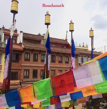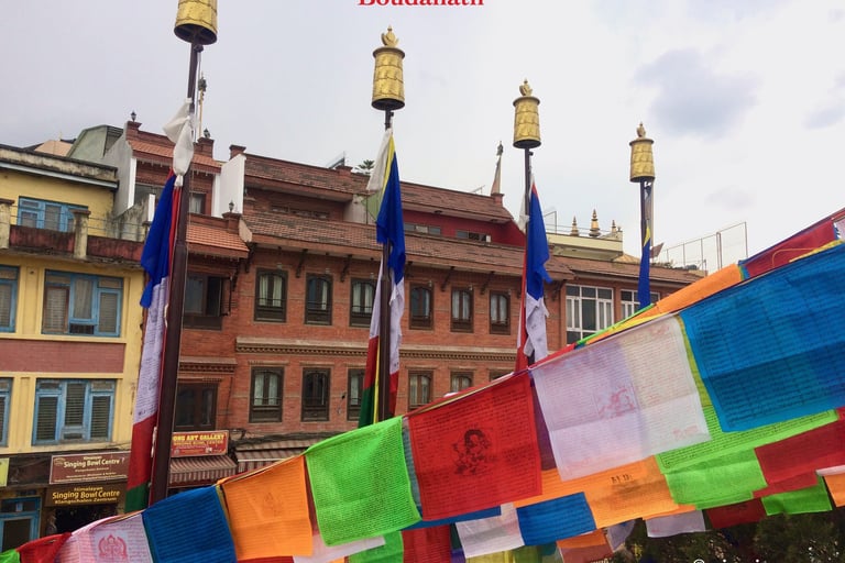 Boudhanath carinhosamente chamado de Boudha pelos locais, visitantes, templos, lojas, cafés e restaurantes dentro do complexo ficam todos sob o olhar compassivos do Senhor Buda no centro e acima da estupa. Com vistas espetaculares, o por do sol visto dos andares mais altos dos restaurantes é de uma beleza extraordinária e inesquecível.